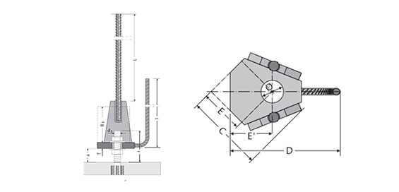 • This threaded connection can bear loads immediately and allows height adjustment of the anchorage points even when they are under load.