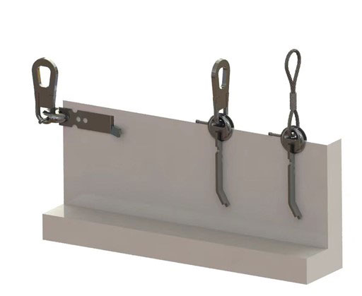 The Combination Ring Clutch can be used for various applications that involve lifting and transporting precast concrete elements, such as beams, columns, walls, slabs, stairs, balconies, etc.